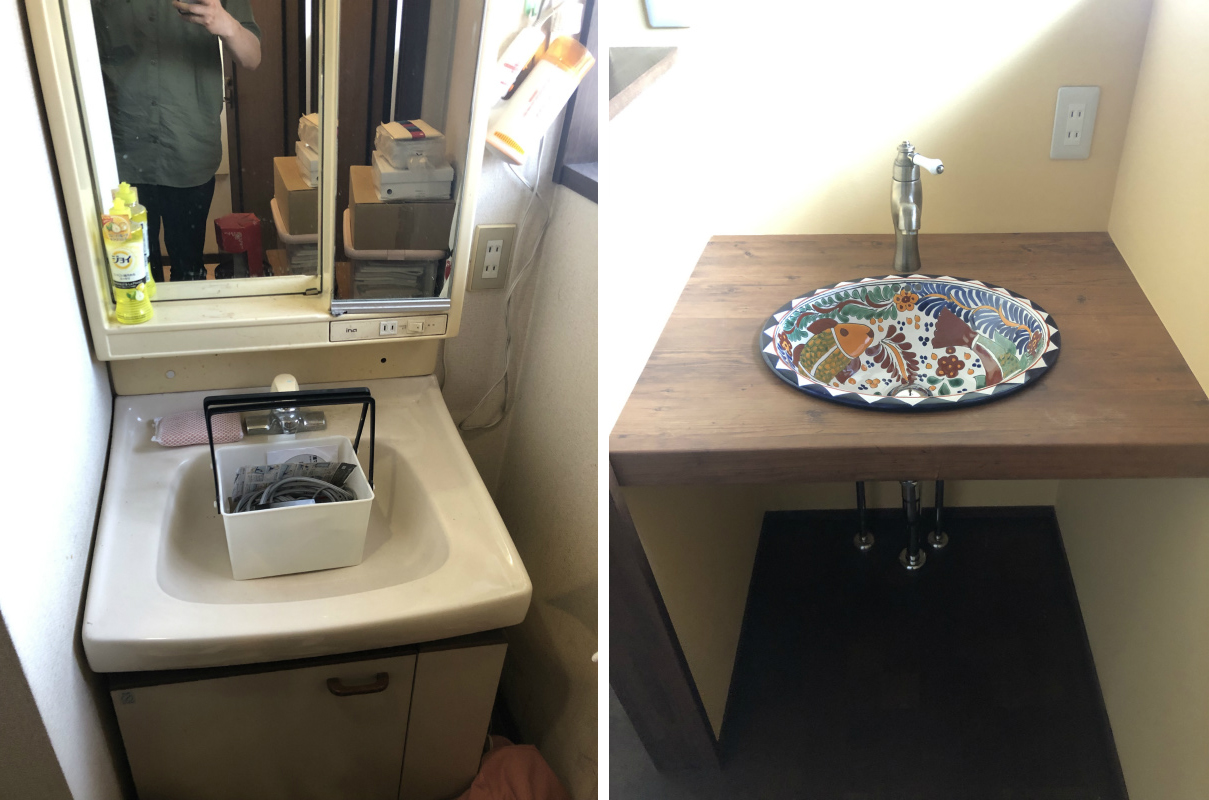 また、トイレと洗面は、生き生きとしたグリーンで張り替え清潔感をと華やか感じを醸し出しています。