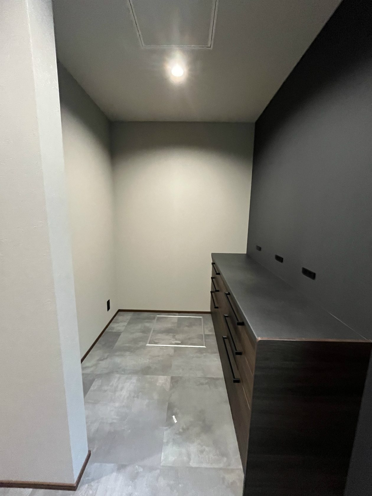 床材は永大産業のコンカーボ/ライトモルタル色で統一しました。