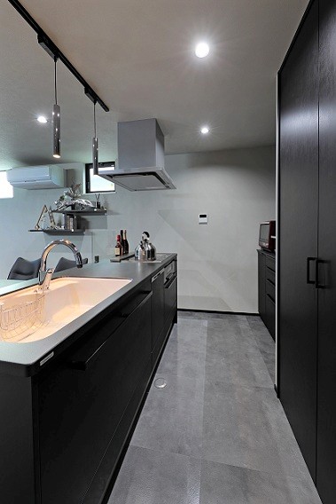 生活感を抑える:収納をつくり込み、生活感のあるものを隠した収納のある空間
